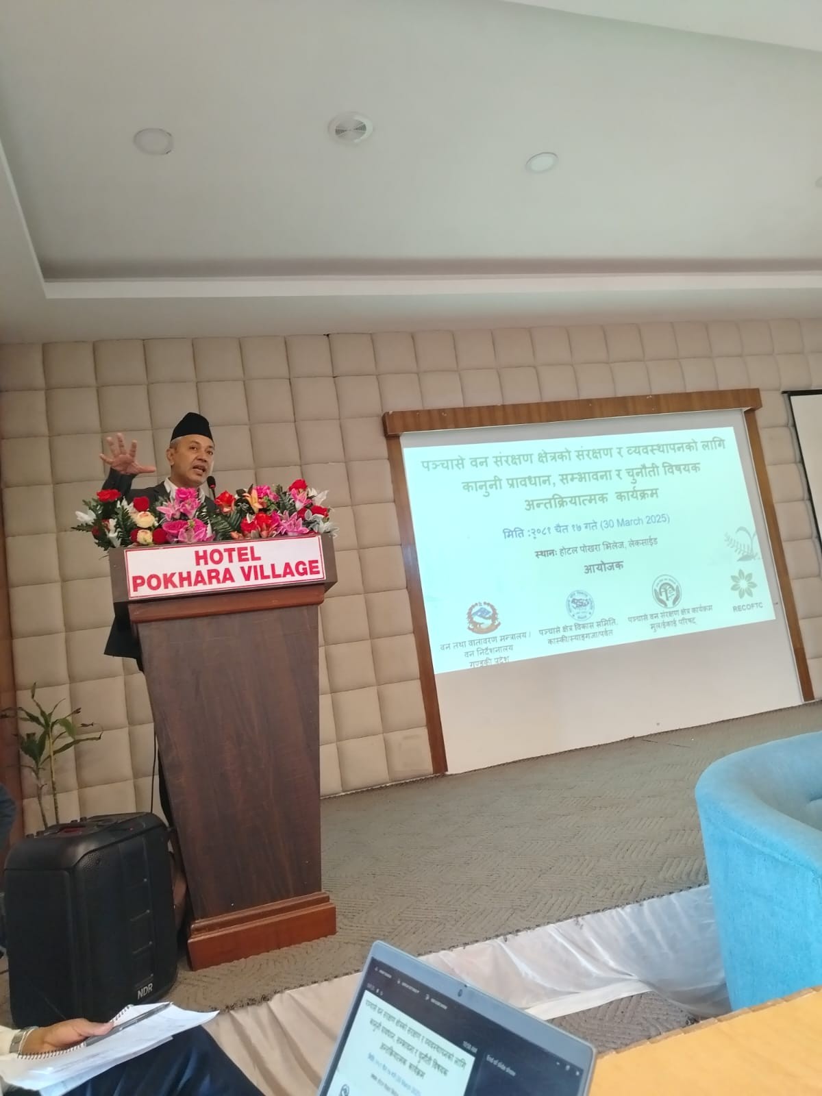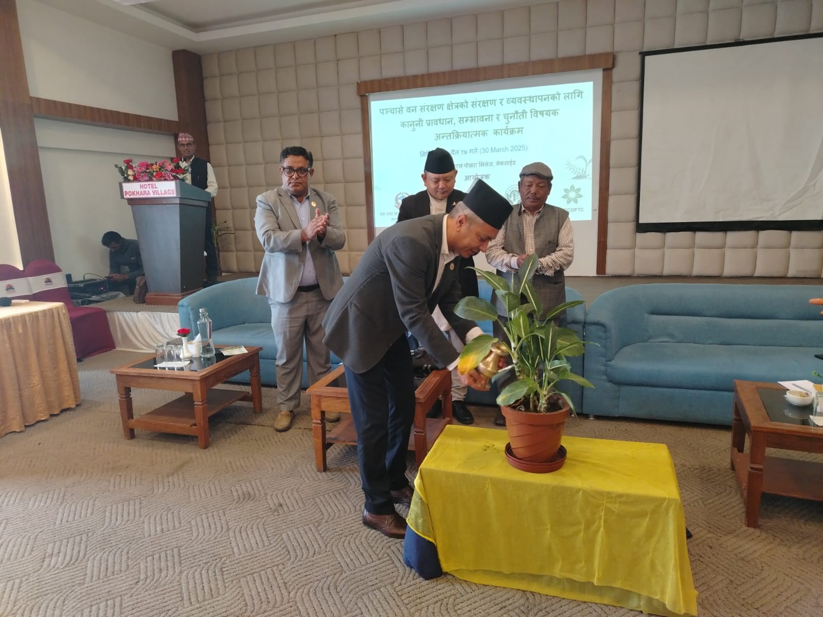गण्डकी प्रदेश सरकारका वन तथा वातावरण मन्त्री माननीय भेष बहादुर पौडेल ज्यूको प्रमुख आतिथ्यतामा "पञ्चासे वन संरक्षण क्षेत्रको संरक्षण र व्यवस्थापनको लागि कानुनी प्रावधान, सम्भावना र चुनौती" विषयक अन्तरक्रियात्मक कार्यक्रम सम्पन्न भएको छ।कार्यक्रममा विभिन्न सरोकारवालाहरूको उपस्थितिमा पञ्चासे वन क्षेत्रको जैविक विविधता, संरक्षणका चुनौतीहरू र दिगो व्यवस्थापनका लागि आवश्यक कानुनी प्रावधानहरूबारे विस्तृत छलफल गरिएको थियो।