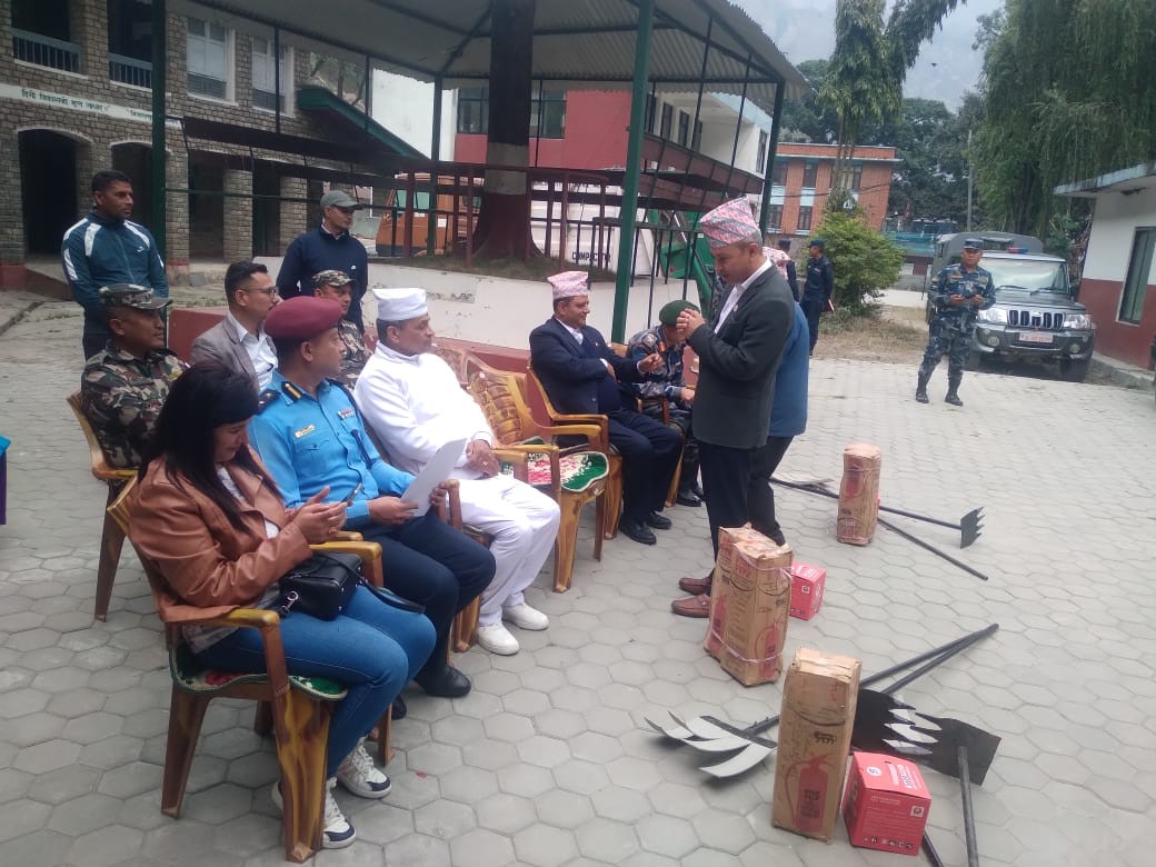 मन्त्री पौडेल ज्युले म्याग्दीका वन कार्यालयहरूको अनुगमन गरी अग्नि नियन्त्रण सामग्री हस्तान्तरण गर्नुभयो