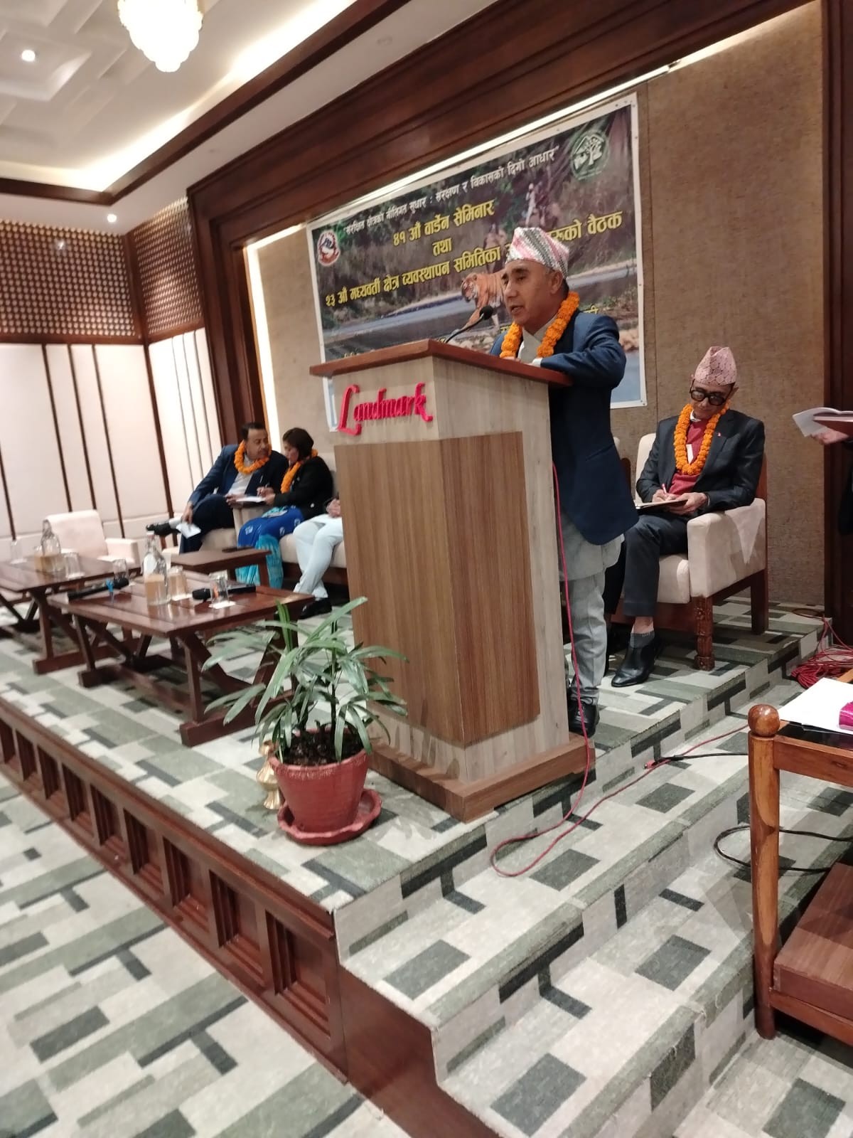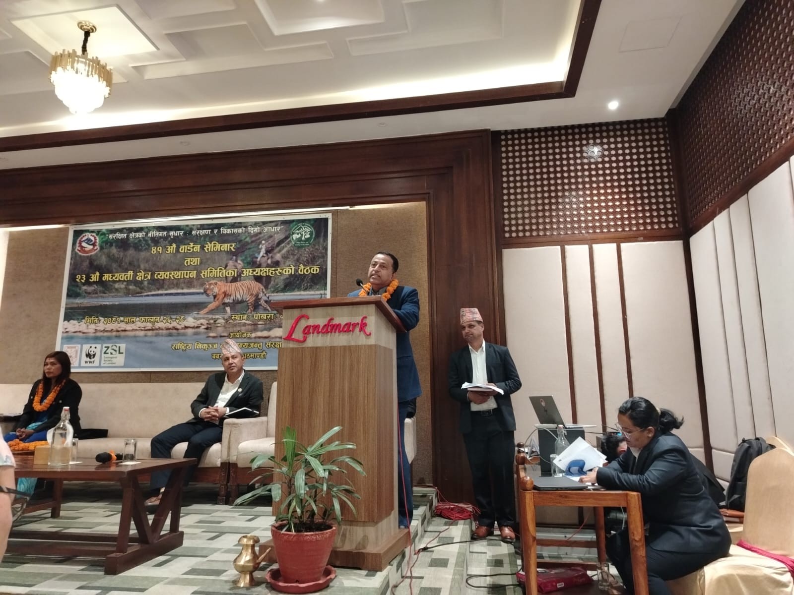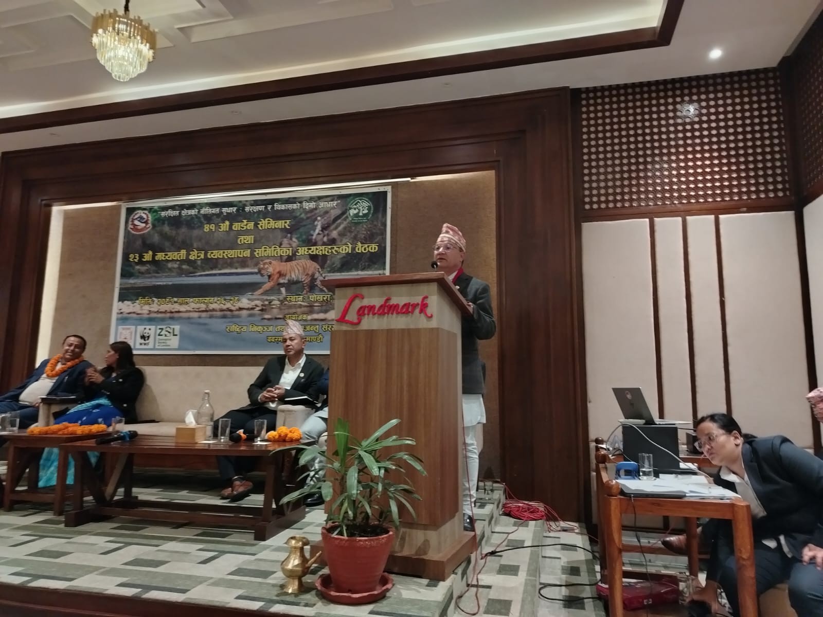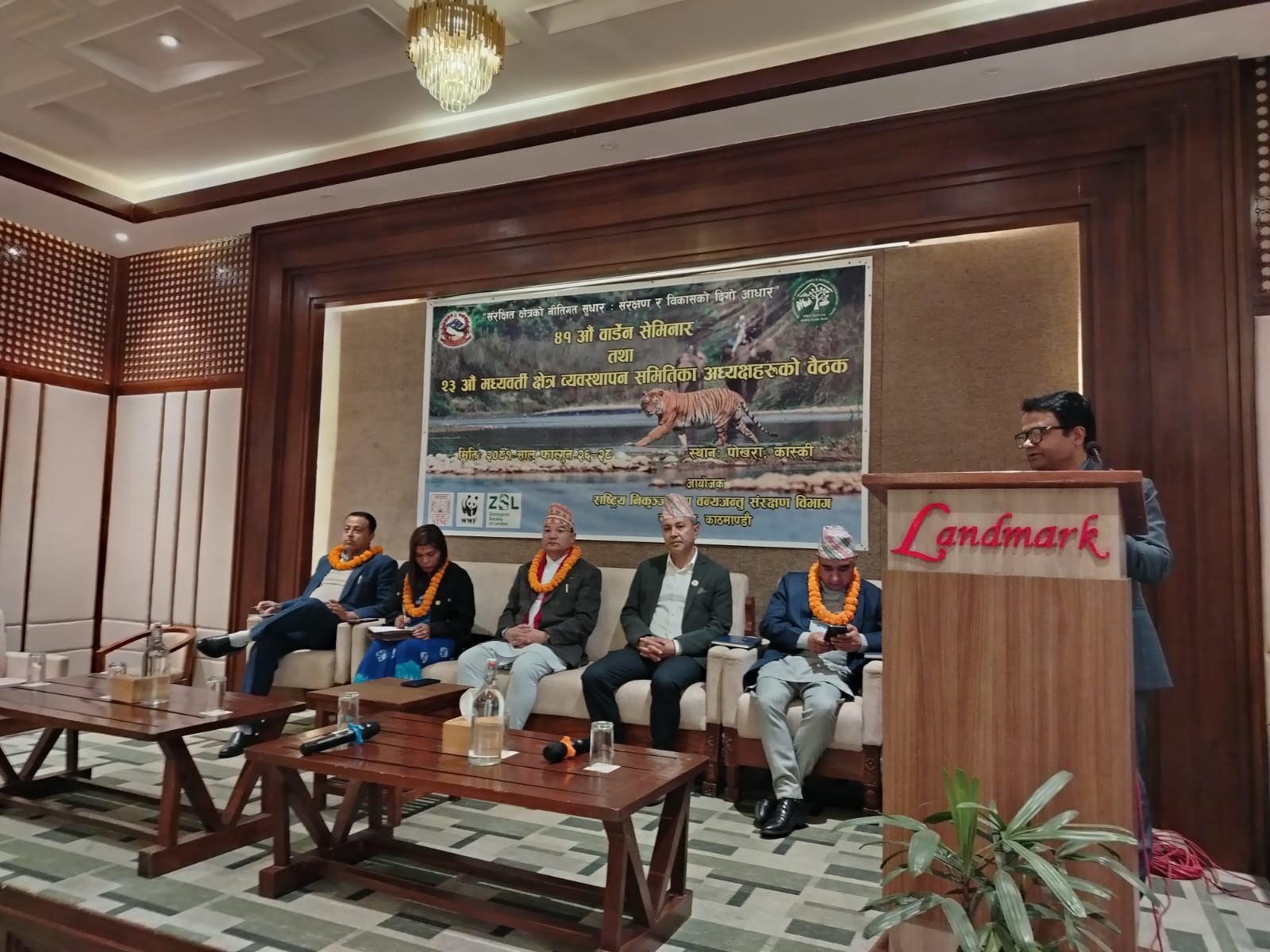 गण्डकी प्रदेश सरकारका वन तथा वातावरण मन्त्री माननीय भेष बहादुर पौडेल ज्युले राष्ट्रिय निकुञ्ज तथा वन्यजन्तु संरक्षण विभागद्वारा आयोजित ४१ औं वार्डेन सेमिनार तथा २३ औं मध्यवर्ती क्षेत्र व्यवस्थापन समितिका अध्यक्षहरुको बैठकमा विशिष्ट अतिथिको रूपमा सहभागीता जनाउनुभएको छ। यो कार्यक्रम वन तथा वन्यजन्तु संरक्षणका महत्वपूर्ण विषयहरूमा छलफल गर्ने र संरक्षणका उपायहरू बलियो बनाउने उद्देश्यले आयोजना गरिएको हो। मन्त्री पौडेल ज्युको उपस्थितिले यस कार्यक्रमलाई ठूलो गरिमा प्रदान गरेको छ।